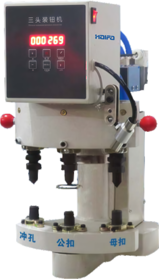360-Degree Rotating Three-HeadPneumatic Button AttachingMachine